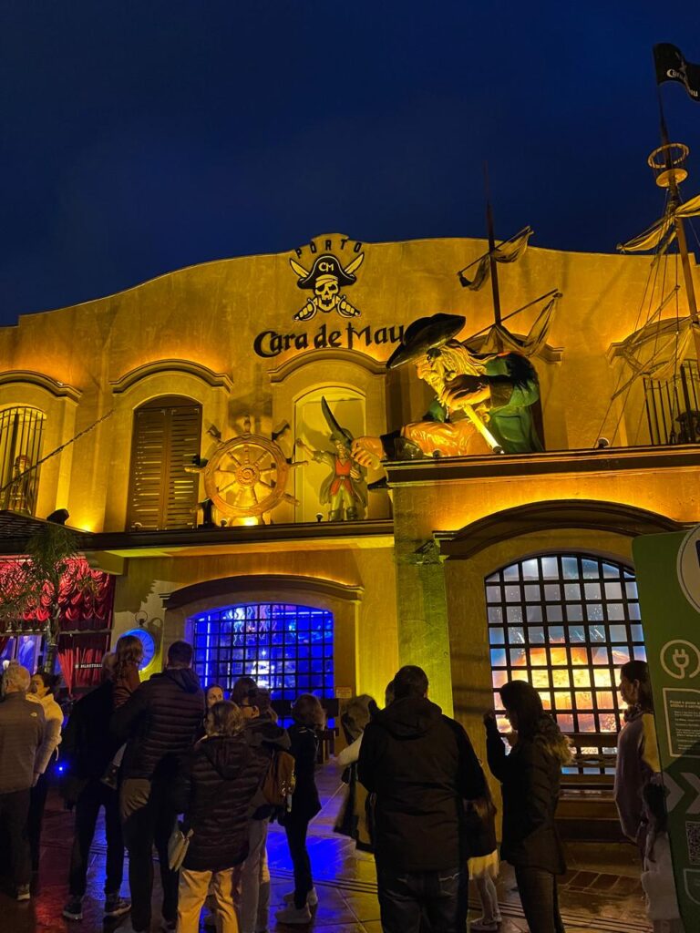 Chegamos por volta das 18h, e o que podemos dizer é que essa foi, sem dúvida, a atração mais divertida da viagem! Mesmo lendo opiniões variadas na internet, pra gente foi sensacional. A pizzaria funciona no estilo rodízio e, além da comida deliciosa, a experiência é o grande diferencial: garçons vestidos de piratas fazem apresentações, brincadeiras e danças durante todo o serviço. Tudo é feito com muito bom humor, e a atmosfera temática transforma o jantar em um verdadeiro espetáculo.