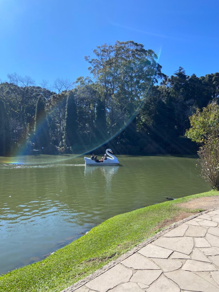 Em seguida, fizemos uma rápida parada no Lago Negro, que nos presenteou com suas águas escuras e a bela paisagem ao redor. Um lugar tranquilo, ótimo para fechar a viagem com boas fotos e um último respiro da natureza serrana.