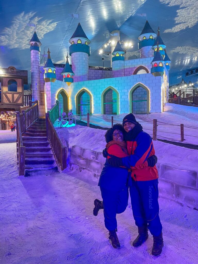 Fomos preparados para o frio e conseguimos curtir alguns brinquedos logo no começo. Mas com o passar das horas, o parque foi enchendo e as filas cresceram bastante, o que acabou tornando a experiência menos agradável. Ainda assim, achamos que vale conhecer pelo menos uma vez. Na saída, demos uma passada rápida na pista de patinação no gelo, encerrando essa primeira parte do dia com alguns tombos e boas risadas.